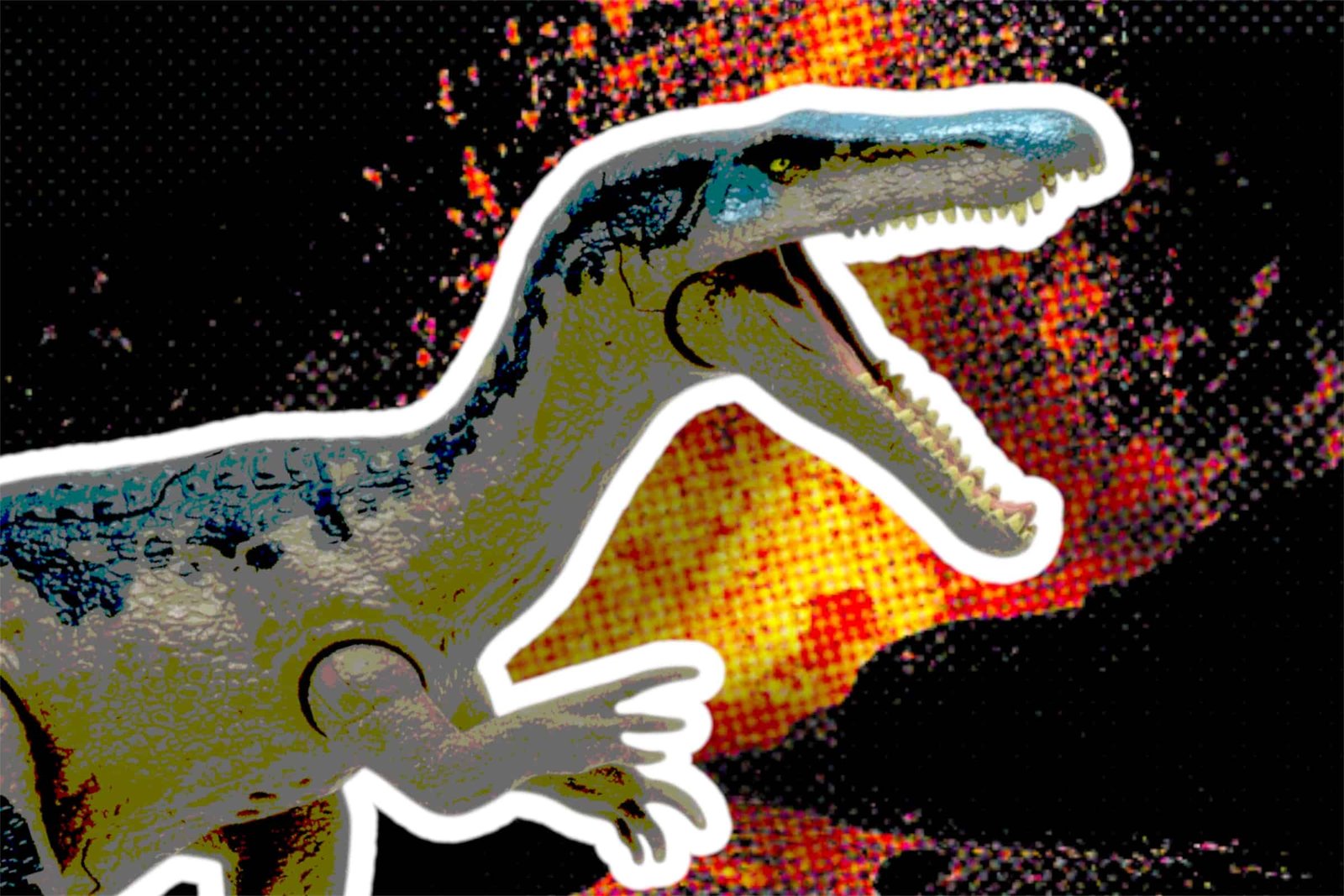 Center: Battle Damage Velociraptor (Mattel, 2018)